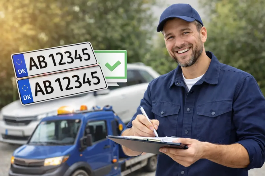 Du behøver ikke selv at indtaste registreringsnummeret hos et statsautoriseret motorkontor eller betale ekstra gebyrer.